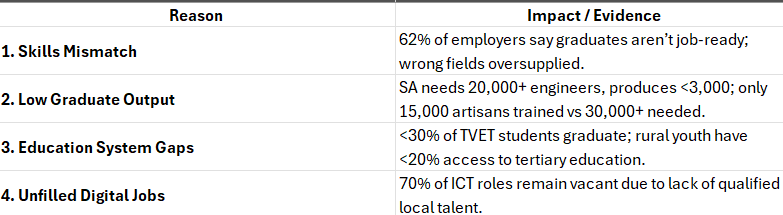 In the last ten years, finding work has become even harder for South Africa’s youth. Many young people are stuck at home—jobless, not studying, and losing. The problem is exacerbated by the mismatch between skills mismatch and demand.