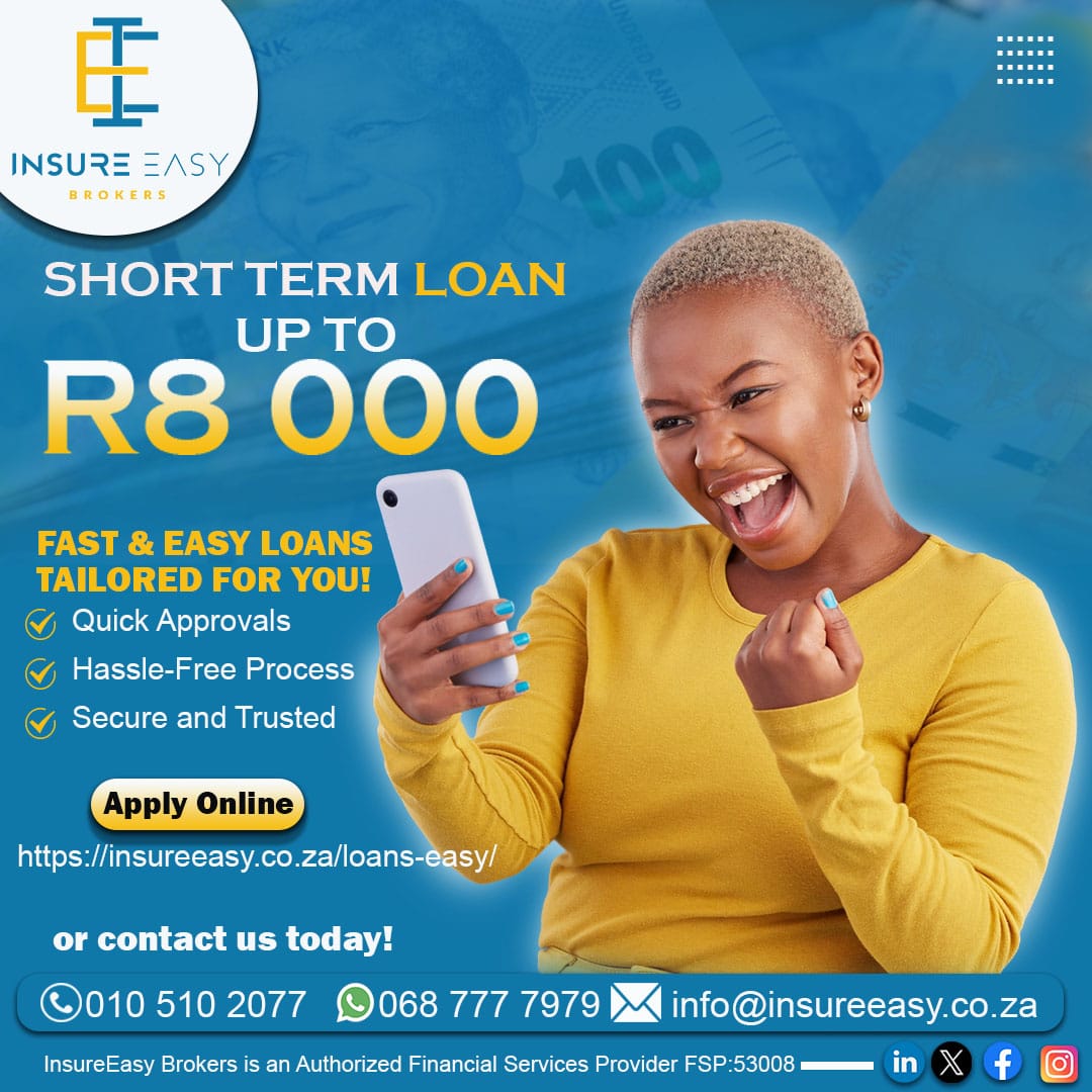 InsureEasy Brokers has partnered with AmaTop Manje, a trusted provider of quick and convenient financial solutions, to bring you Loans Easy. This service offers fast, hassle-free loans tailored for your everyday needs. No lengthy paperwork—just swift access to funds when you need them most.